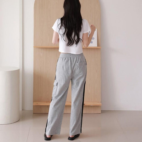 [옷자락] 여성용 배색 프릴 와이드 트레이닝 팬츠