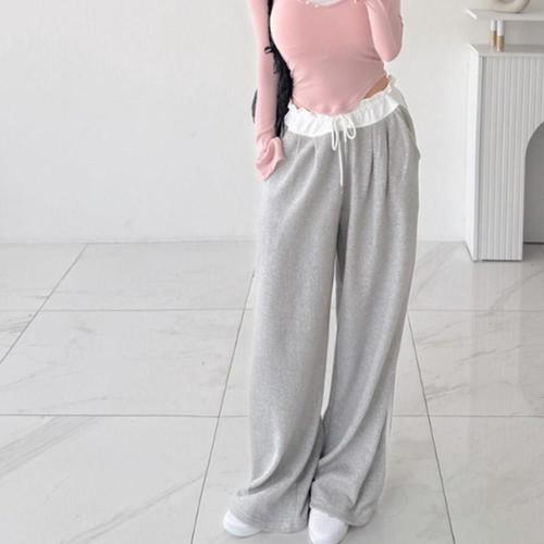 [옷자락]여성용 배색 프릴 와이드 트레이닝 팬츠