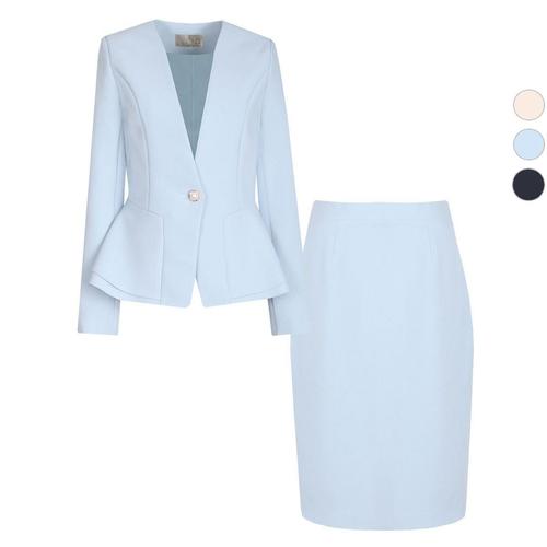봄 가을 여성정장세트 페플럼 자켓 스판 스커트 투피스 셋업수트 정장룩