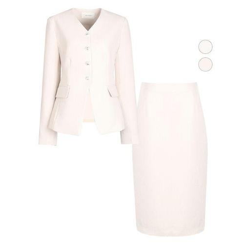 [비비드시크릿가너]SET 여성 쥬얼 피크드 봄가을 정장 자켓+스커트 세트