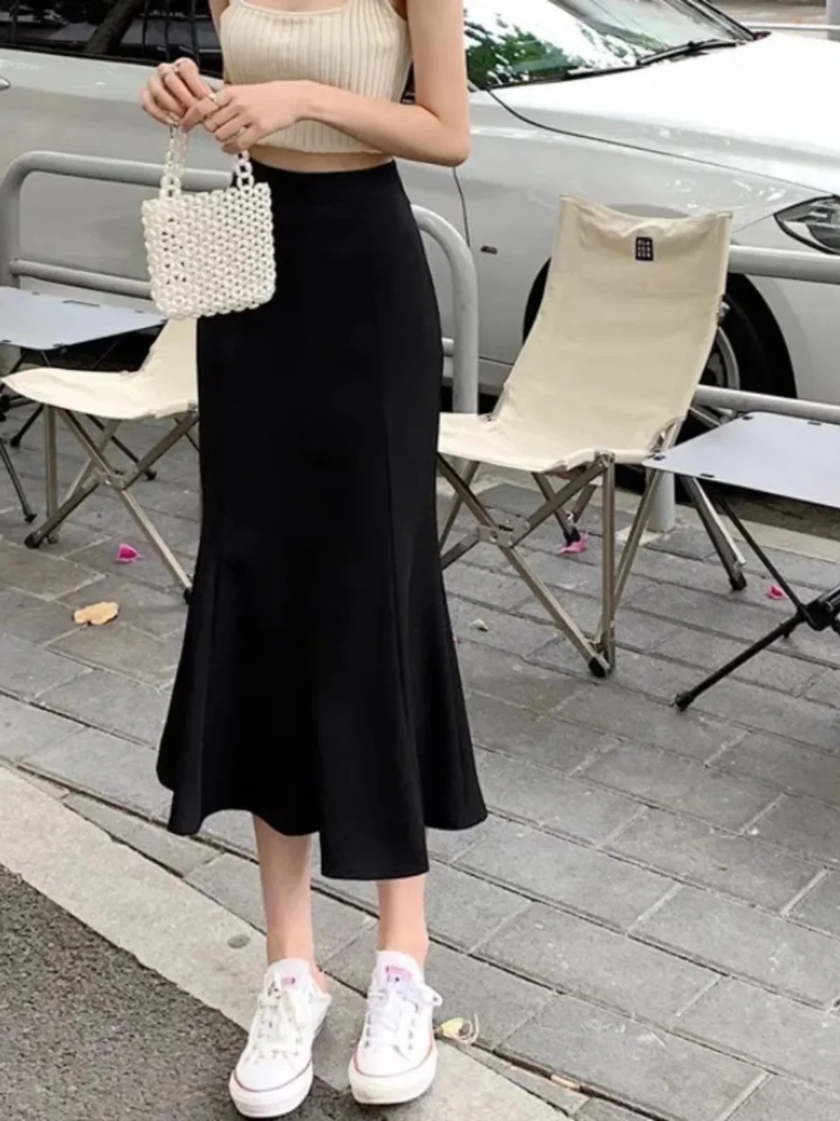 플러스 사이즈 아이스 실크 피쉬테일 스커트 슈트 여성 여름 휴가 해변 반바지 빈티지 스타일 25-35세용