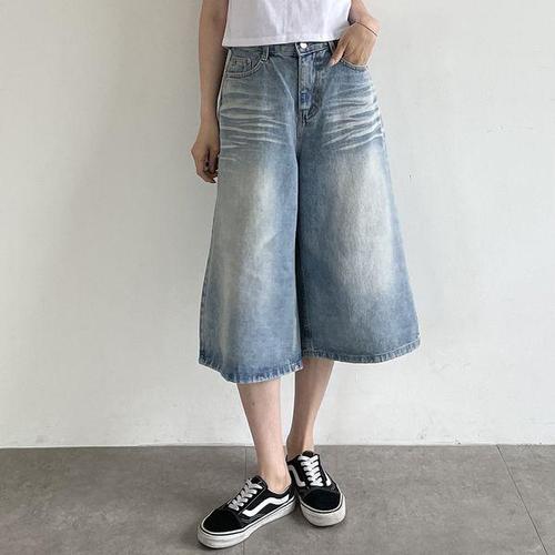 [다잇템][다잇템] 여자 Y2K 와이드핏 건빵 로우라이즈 칠부 워싱 청반바지_17461439_588872