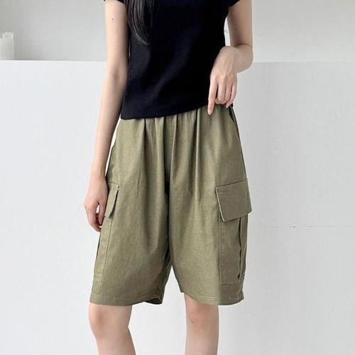 |CHP8C5A|여성용 코튼 레이온 카고 스타일 밴딩 버뮤다 반바지