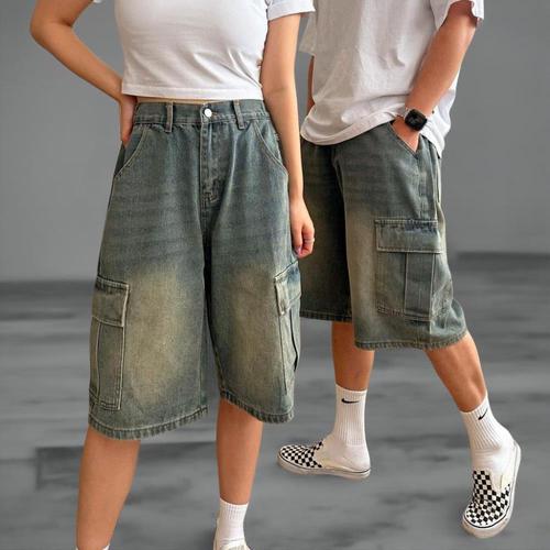 |CSP8C28|여성 빈티지 카고 반바지 뒷밴딩 남자 청반바지