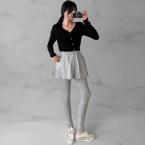 [신상오픈런]여성 스포티 면혼방 스판 반바지 레이어드 레깅스