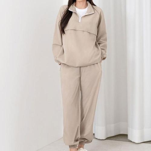 상상그이상 여성용 국내제작 위니 트레이닝 세트 시원한 원단 얇은 바스락소재 간절기 여자 츄리닝 가볍게 입기 좋은 편안한 스트링 밴딩팬츠 세트