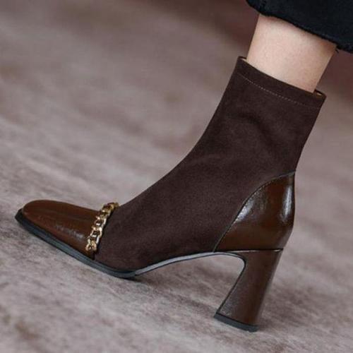 [셀러허브_여성트랜드패션]여성 겨울 앵클 스웨이드 부츠 포인트 발목 체인 구두