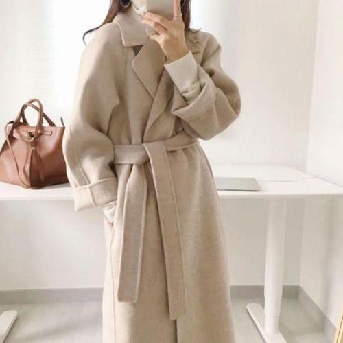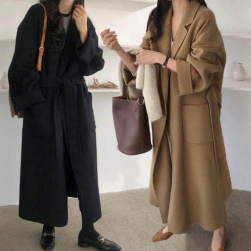 ANYOU 여성 겨울 캐주얼 로브벨트 모직 롱코트 루즈핏 데이트룩 오피스룩 하객룩 코트 아우터