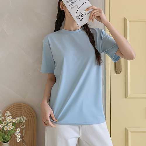 제이 라운드넥 여성 스판 기본티 반팔티 기능성 국내생산 기본핏