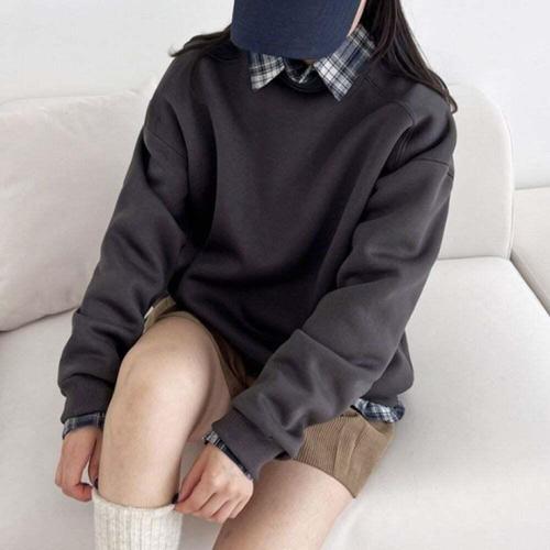 [오너클랜]인기상품 여성용 겨울 기모 안감 후드 맨투맨 라운드넥 캐주얼 루즈핏 티셔츠 [WFLKZQR_260304]