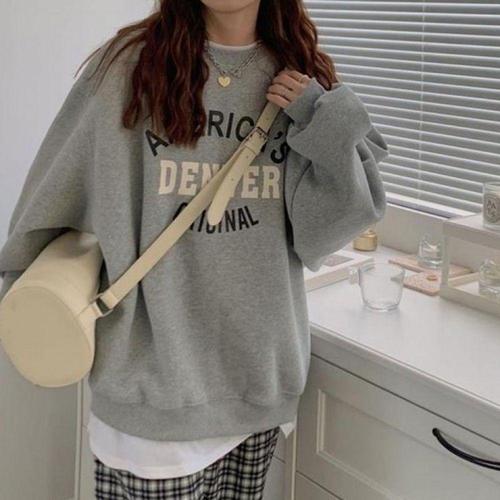 [오너클랜]인기상품 여성용 루즈핏 기모 긴팔 맨투맨 티셔츠 레터링 디자인 [WFLL86R_260304]