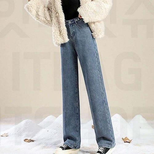 [신상오픈런]여성용 겨울 기모 일자핏 진청색 논스판 청바지
