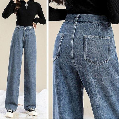 [신상오픈런]여성용 겨울 기모 일자핏 진청색 논스판 청바지 (45899907)
