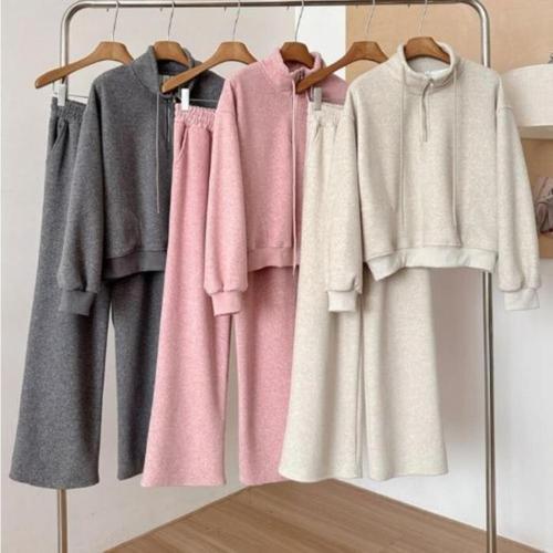 [신상오픈런]여성용 기모 반집업 트레이닝 세트 편안한 투피스 (46120433)