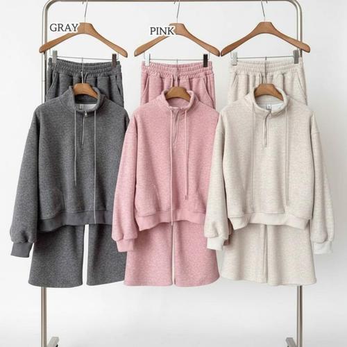 [신상오픈런]여성 기모 반집업 트레이닝 세트 편안한 투피스 (46120432)