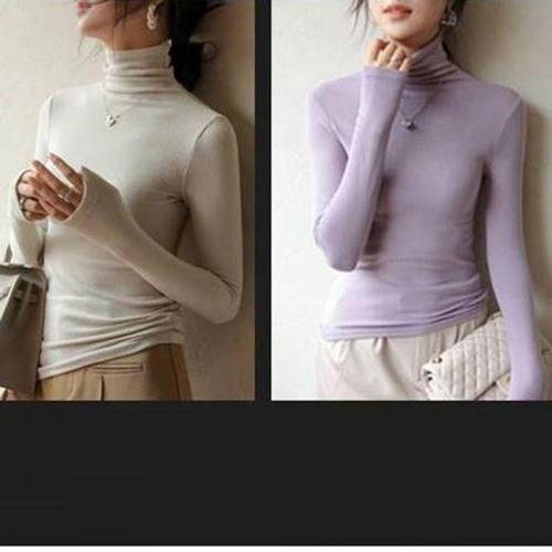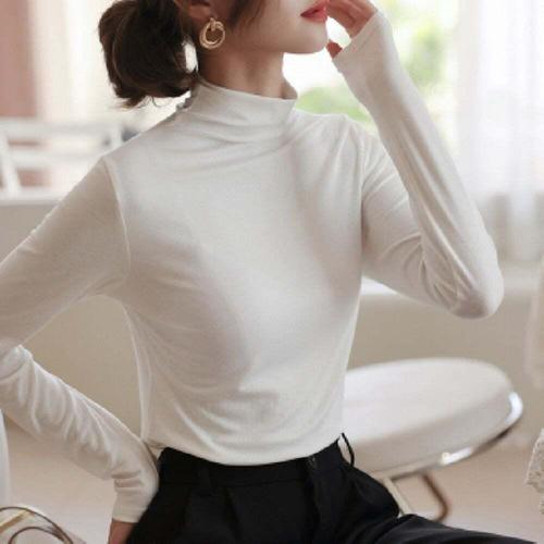 여성 슬림핏 무지 목폴라 티셔츠 겨울 데일리 이너웨어 긴팔 니트