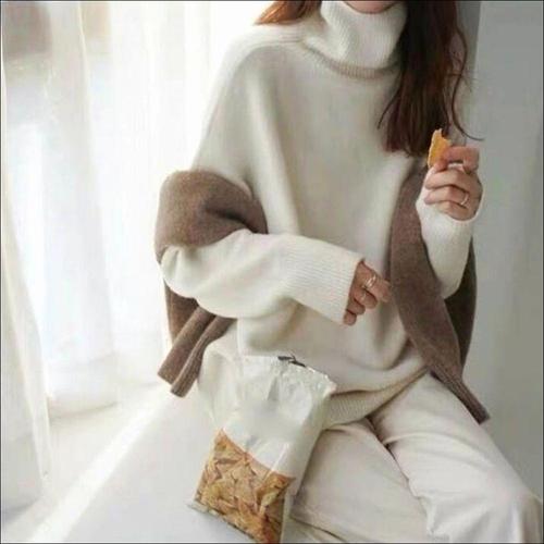 슬림소녀 여성 반목 슬림 심플 스웨터 긴팔 보온 니트 부드럽고 편안한 상의