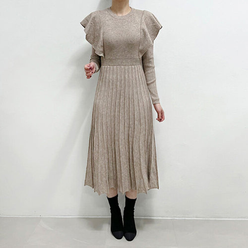 미즈큐즈 / 날개 프릴 플레어 주름 플리츠 니트원피스 2color