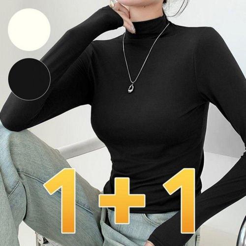 1+1 여성 목폴라 니트 스웨터 캐주얼 가을 겨울 도톰 터틀넥 상의 루즈핏 이너 니트티 기질 하이넥 니트 스웨터 2P CY