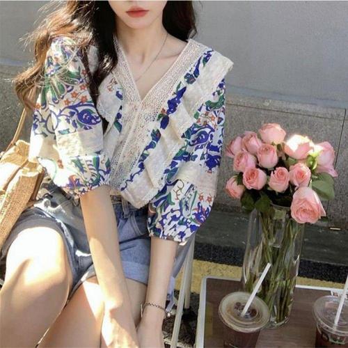 파라다이소 여성용 V넥 러블리 프렌치 스타일 스프링 블라우스