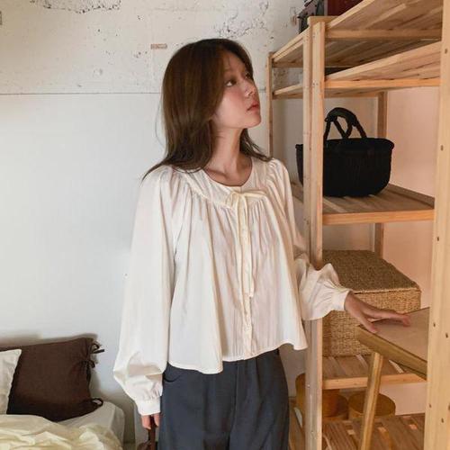 [셀러허브_여성트랜드패션]ONM 러블리 클래식 라운드넥 퍼프소매 셔츠 N 00