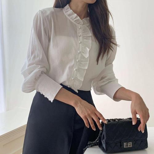 러블리 감성 여리핏 쉬폰 블라우스 여자 데일리 패션 봄가을정장셔츠 베이직남방셔츠 데이트룩스타일링 사