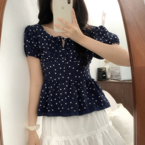 입꼬 / 러블리 도트 퍼프소매 리본 블라우스