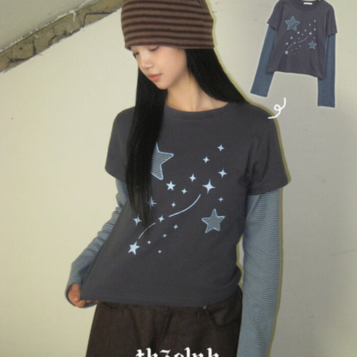 더핑크 / 레이 반팔 레이어드 스타 자수 패치 긴팔티
