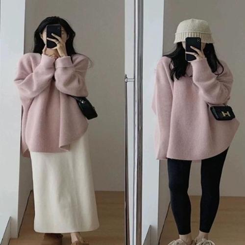 [엄지척]여성 데일리룩 오버핏 롱니트티 기본 빅사이즈 긴팔티_19677378_667501