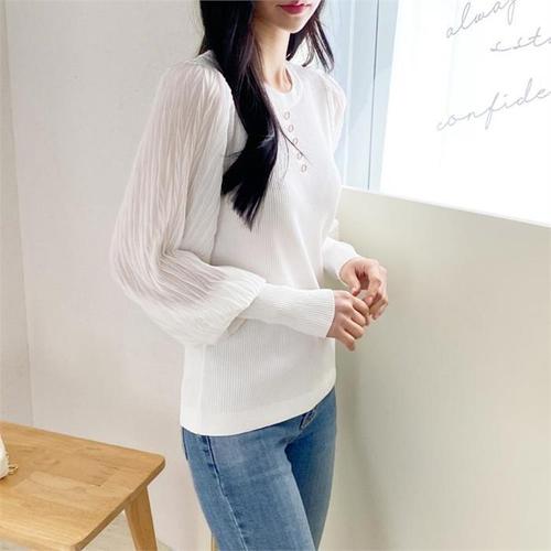 여성 봄가을 그물 롱 니트티 루즈핏 부드러운 V넥 펀칭 니트 레이어드 상의