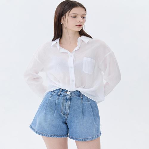 Akimu 여성셔츠 린넨셔츠 쉬폰 숏 블라우스 오버핏 데일리룩