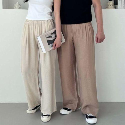 [에이치플러스몰]여성 데일리 베이직 밴딩팬츠 긴바지 패션 여름 린넨 와이드 마바지