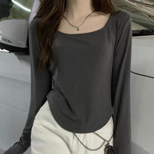 [에이치플러스몰]스트 여리핏 얇은 긴팔티 JSCd0092 라운드 여성 티숙 S 면티 티숙 여성 사이즈