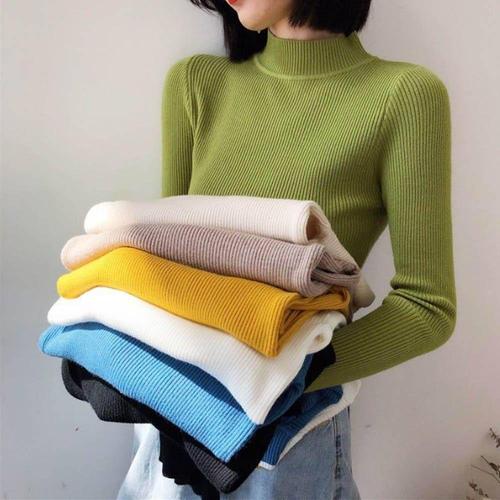 여성 목폴라 니트티 부드러운 슬림핏 스판 터틀넥 폴라 티셔츠 슬림소녀