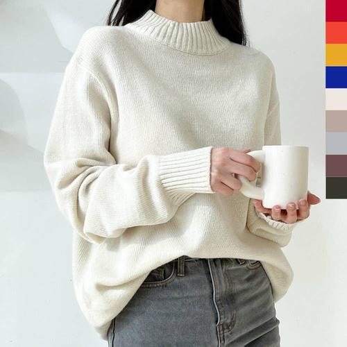 [셀러허브_여성트랜드패션]니트 부드러운 터틀넥 니트티 데일리 목폴라니트 오버핏 반집업니트