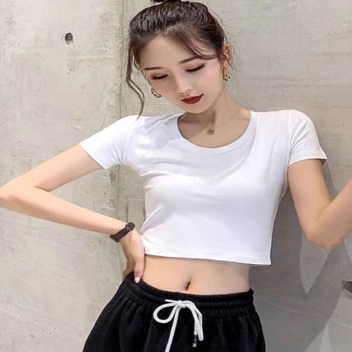 [엄지척]여자 슬림핏 기본 크롭 반팔 티셔츠 날씬 무지티_19626774_667501