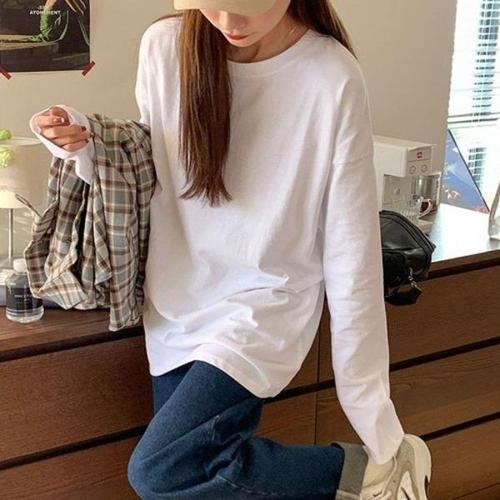 [엄지척]여자 2컬러 심플 무지티 긴팔티셔츠 라운드넥 봄 가을_19627570_667501
