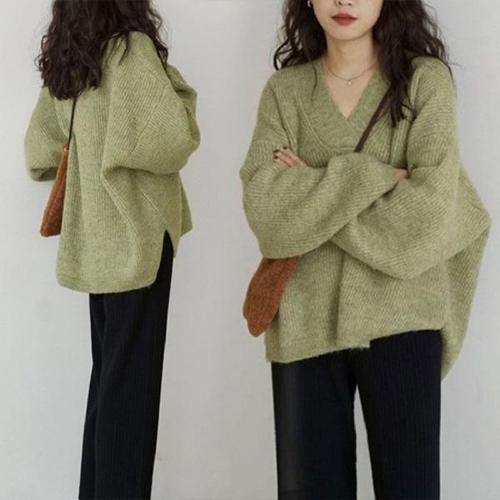 [엄지척]여성 브이넥 여자 니트 긴팔티 무지티 8색_19628155_667501