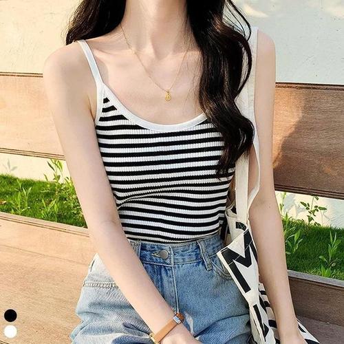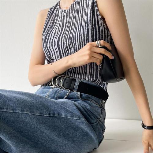 [다잇템]여자 H라인 민소매티 슬리브리스 단가라 티셔츠 (7806151A)