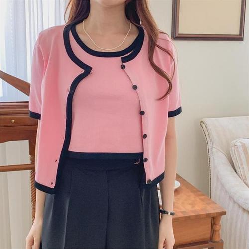 [다잇템]여자 민소매티 콘트라스트 드레스업 세트 (8291866A)