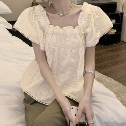 [엄지척]여성 레이스 스퀘어넥 블라우스 반팔 바캉스룩_19650358_667501