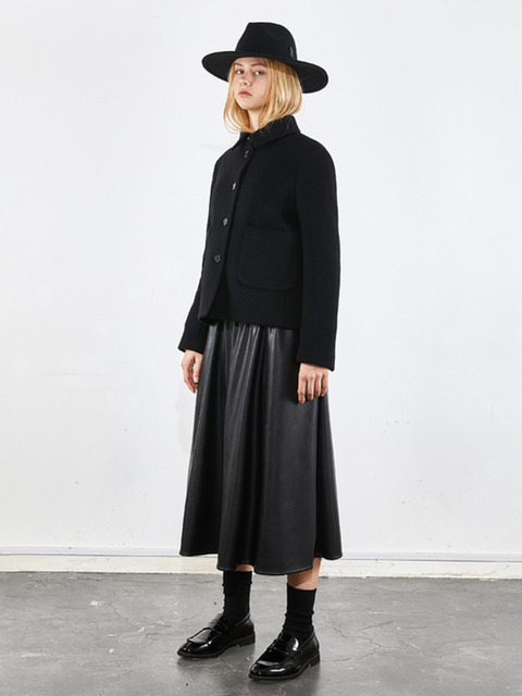 여성반코트 세일러 빅카라 모직 하프 코트 안감 부분 절개 뒷슬릿