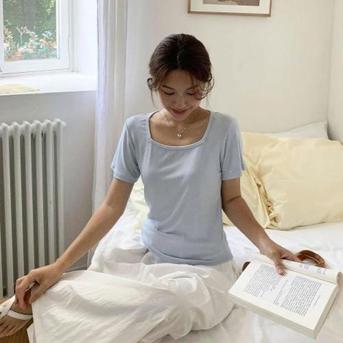 [다잇템][다잇템] 여자 폴리 스퀘어넥 소프트핏 편한 무지컬러 반팔티_21845426_588872