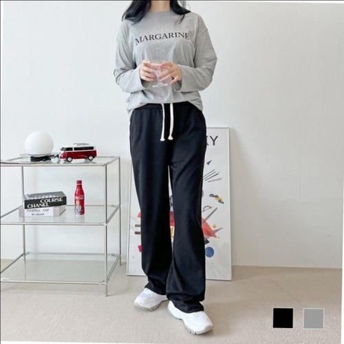 [라일리의류] Rly 세미 일자 스판 허리밴딩 코디 면 배기팬츠 긴바지