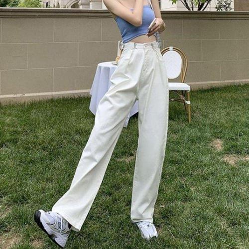 Makone 여성 청바지 빈티지 편안한 하이웨이스트 트랜드 캐주얼 데님 배기팬츠