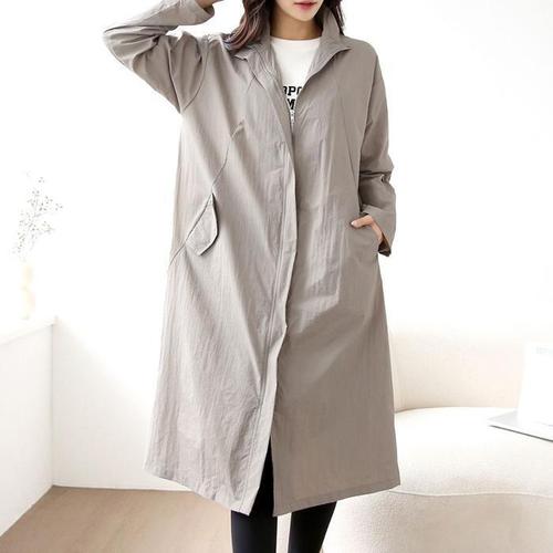 [다잇템]여성 슬릿 나일론 롱 집업 봄아우터 점퍼 (45899493)