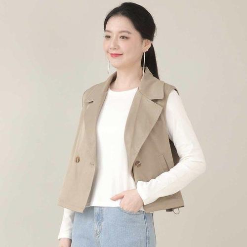 [애비뉴투지]엄마옷 트렌치 숏 테일러 카라 더블 단추 밑단스트링 주머니 여성 봄 가을 조끼 V10524