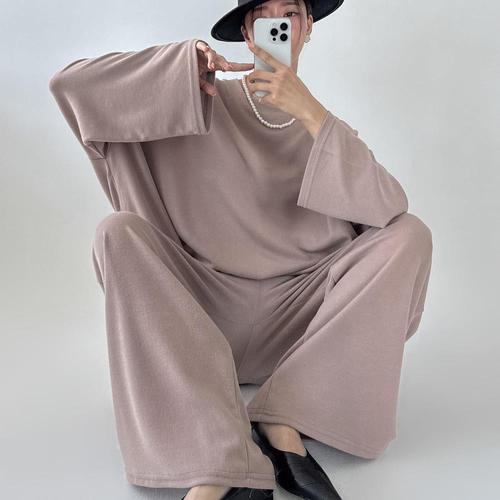 [옷자락]여자 빅사이즈 트임 오버핏긴팔 와이드팬츠 가을 세트