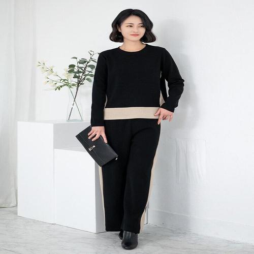 [옷자락] 여자 빅사이즈 트임 오버핏긴팔 와이드팬츠 가을 세트