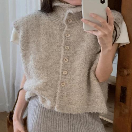 [퍼니걸스]부클 뽀글이 하이넥 카라 버튼 무지 니트 조끼 9166 여성의류